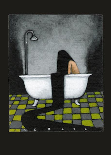 Marco Cazzato è un pittore ed illustratore italiano molto legato al mondo dell’editoria. Il suo immaginario surreale è popolato da volatili e cetacei, animali vari e non persone, grafica e colore. Oltre al link del sito aggiungo anche quello di uno dei suoi blog, Illustri Racconti, perché trovo molto interessante l’idea del "rovesciamento del percorso abituale", ovvero di come si possa costruire un racconto partendo dalle suggestioni di un dipinto.